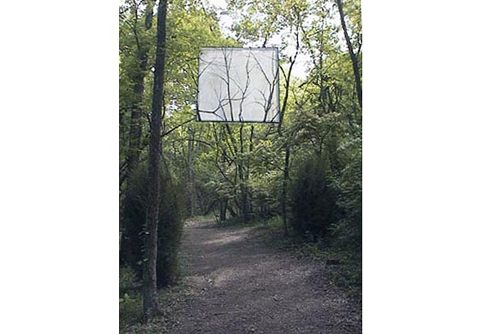 Set on the Woodland Sculpture Trail at Cheekwood Museum, 15 January 1997 shows visitors a vision of the trail as it appears in winter. Set exactly in line with the trees that it illustrates, the piece allows viewers to shift their gaze back and forth between the black-and-white picture and the real trees behind it.