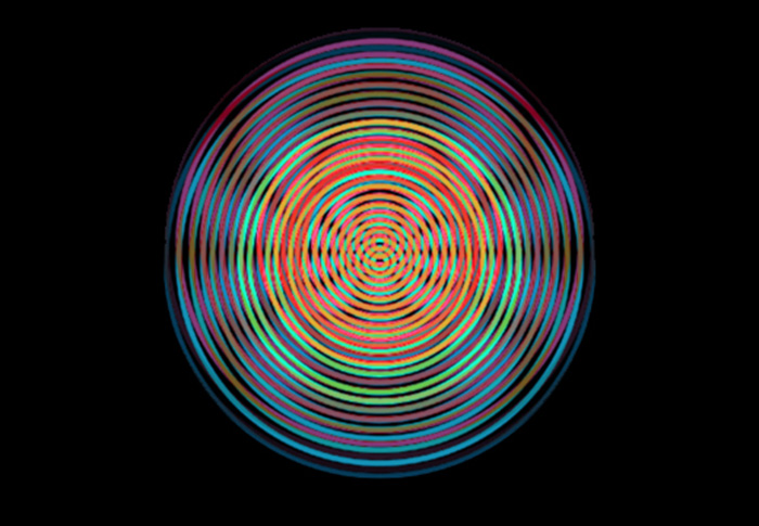 Visitors to the gallery are invited to put on wide, Velcro-secured belts, and to sit together on a bench facing a gallery wall, where two sets of concentric circles are projected. The circle sets are projected in front of the participants. As the circles pass each other, moire patterns form. The patterns get more and more complex as the circles overlap more and more, and then disappear for an instant as the circles match up perfectly.